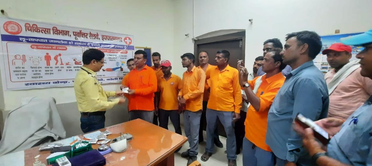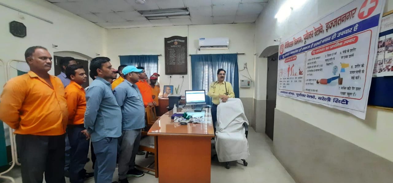 बरेली । पूर्वोत्तर रेलवे इज्जतनगर मंडल अपने समस्त लाइन कर्मचारियों के स्वास्थ्य के प्रति बहुत ही सजग रहता है। इसी के तहत चिकित्सा विभाग द्वारा मंडल की स्वास्थ्य इकाईयों बरेली सिटी, पीलीभीत, लालकुआं, काठगोदाम, काशीपुर, कासगंज, फतेहगढ़, मथुरा छावनी में भीषण गर्मी एवं हीट स्ट्रोक से बचाव के लिए जागरूक किया गया