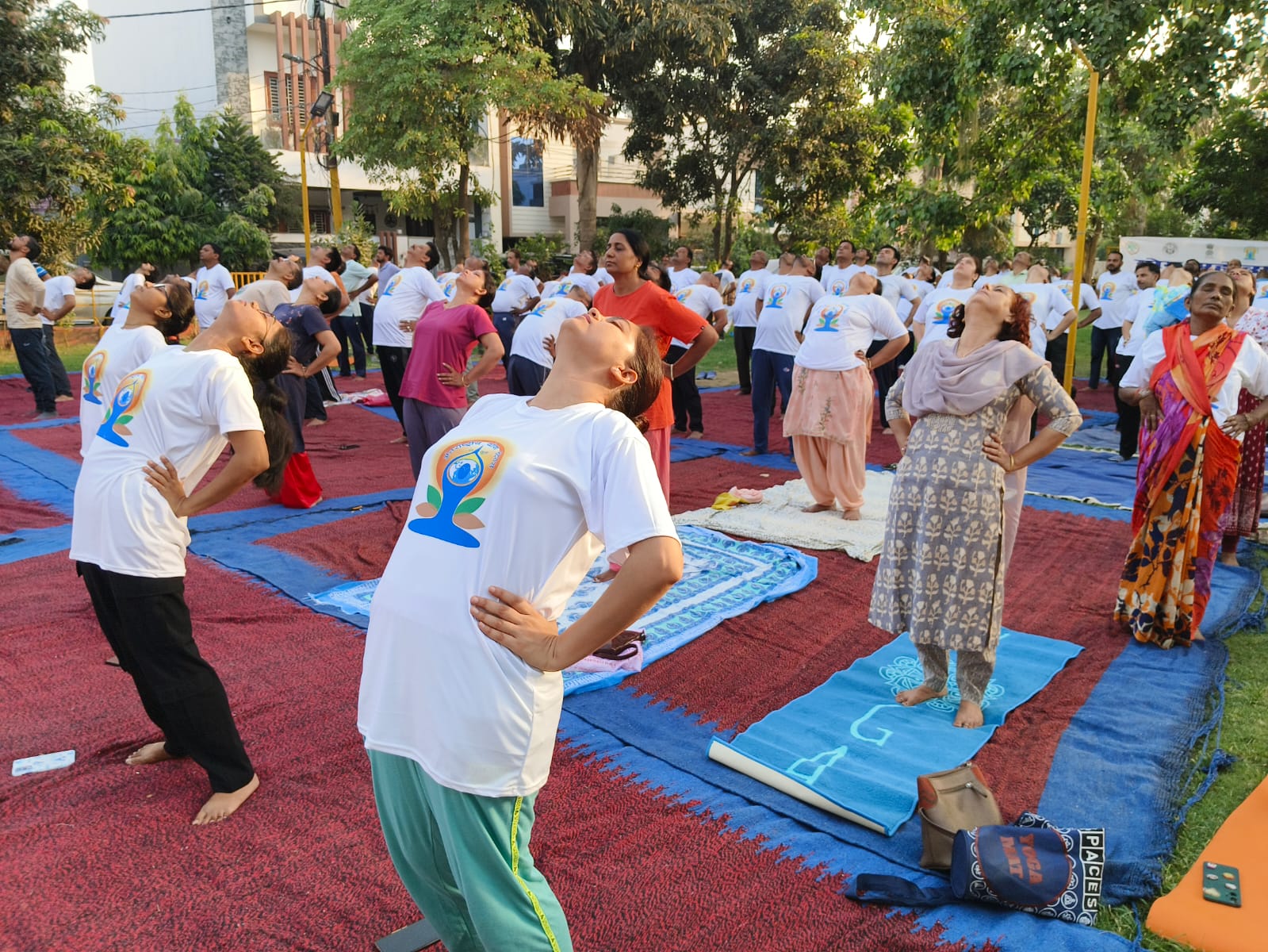 योग विशेषज्ञ गरिमा सिंह ने उत्तानासन कराया, जिससे दिमाग शांत रहता है, यह डिप्रेशन, चिंता को दूर करने में मदद करता है, जंघा और घुटने मजबूत करता है, सिरदर्द और अनिद्रा को दूर करता है। पाचन में सुधार लाता है, उसके बाद ताडासन कराया, इसको करने से जंघा और घुटने मजबूत होते हैं, रीड की हडडी के रोगों को दूर करता है, सियाटिका के दर्द में बहुत लाभदायक है, शरीर के संतुलन को विकसित करता है। चक्की चलासन कराया, इसके करने से पेट का मोटापा बहुत तेजी से घटता है, महिलाओं के लिए बहुत ही उपयोगी आसन है। रीड की हडडी में लचीलापन लाता है। बढापे के लक्षणों को कम करने में बहुत लाभकारी है साथ ही मन को शांत करता है।