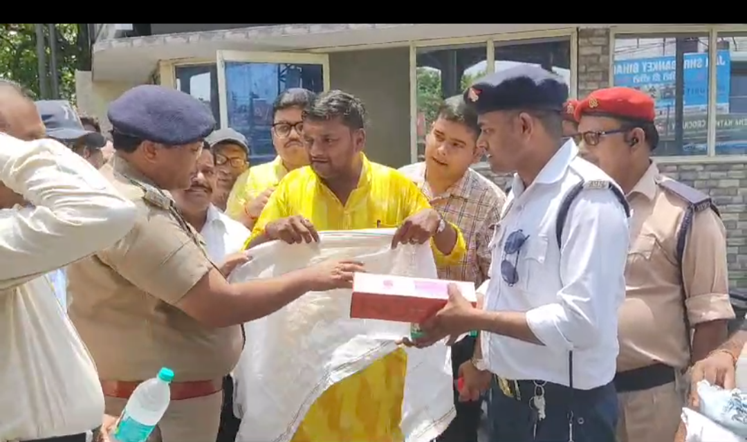 गुरुवार को संगठन के तमाम कार्यकर्ता दुर्गेश गुप्ता के नेतृत्व में पटेल चौक पर एकत्र होकर सीओ सिटी प्रथम पंकज श्रीवास्तव एवं ट्रैफिक इंस्पेक्टर मनीष शर्मा के साथ ट्रैफिक पुलिस कर्मियों को ठंडे पानी का थरमस गमछा पानी की बोतल एवं जलपान देकर कार्यक्रम का शुभारंभ किया