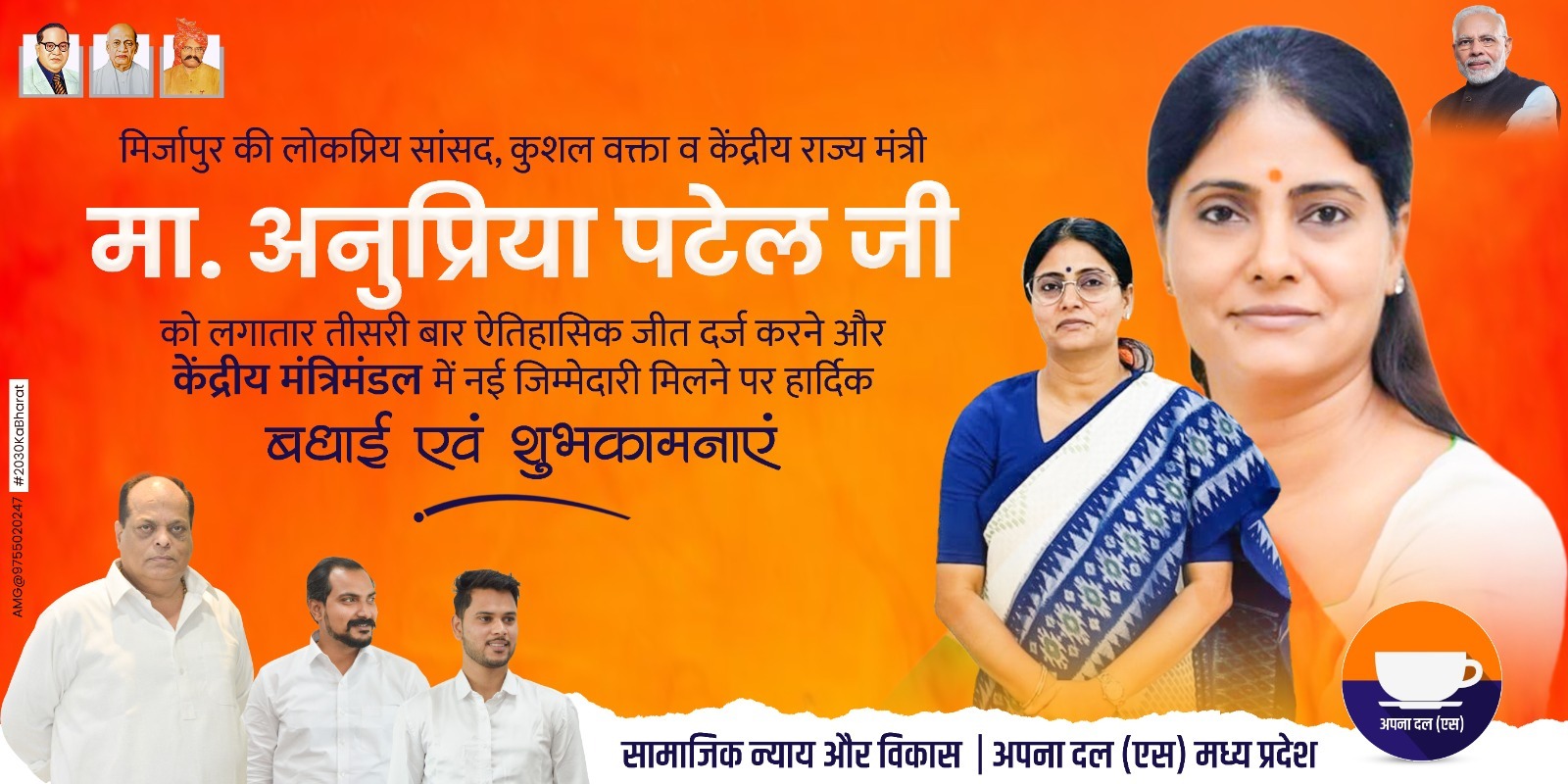 राजनीतिक रणनीतिकार अतुल मलिकराम ने भी इस अवसर पर अपनी शुभकामनाएं दीं। उन्होंने कहा, “अनुप्रिया पटेल की जीत और केंद्रीय मंत्री बनने पर हार्दिक बधाई। उनकी यह जीत भारतीय राजनीति और मिर्जापुर के विकास में उनके महत्वपूर्ण योगदान का प्रतीक है और हम उनके उज्ज्वल भविष्य की कामना करते हैं।”