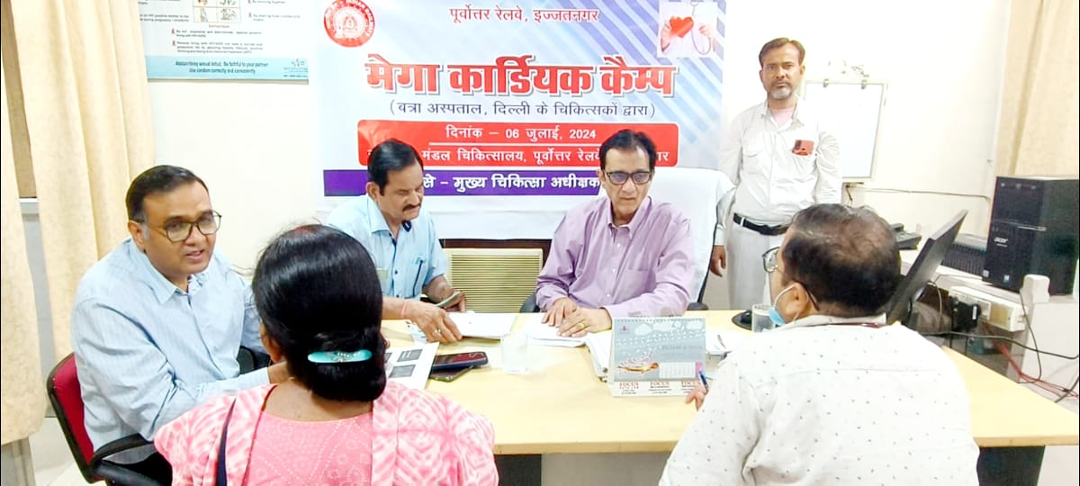 बरेली। मंडल चिकित्सालय इज्जतनगर के मुख्य चिकित्सा अधीक्षक डॉ यू.एस.नाग के कुशल निर्देशन में बत्रा अस्पताल, नई दिल्ली के हृदय रोग विशेषज्ञ डॉ संजीव शर्मा एवं डॉ संजय पांडेय तथा मंडल चिकित्सालय इज्जतनगर के हृदय रोग विशेषज्ञ डॉ सचिन श्रीवास्तव द्वारा हृदय रोग परीक्षण हेतु एक शिविर का आयोजन किया गया। जिसमें 62 रेल कर्मचारी एवं उनके आश्रितों का स्वास्थ्य परीक्षण कर तद्नानुसार चिकित्सीय सुविधा प्रदान की गई ।