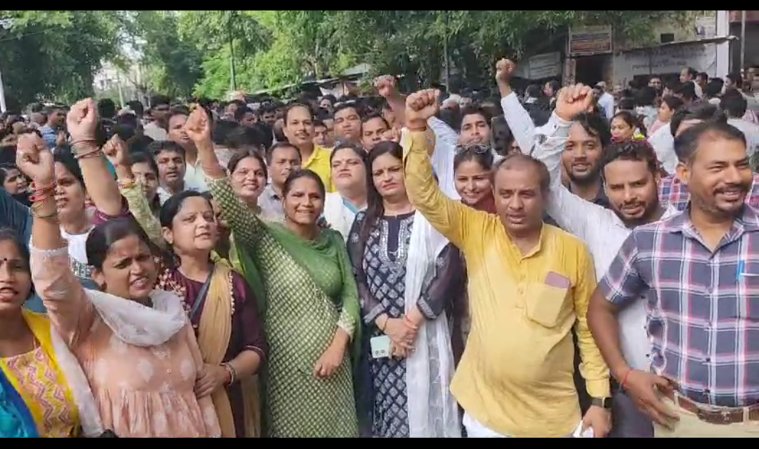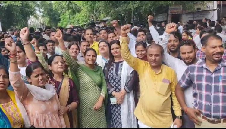 ऑनलाइन हाजिरी के खिलाफ सड़कों पर उतरे शिक्षक