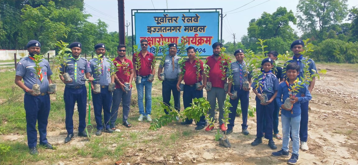 बरेली ।: पूर्वोत्तर रेलवे, इज्जतनगर मंडल पर पर्यावरण संरक्षण का संदेश देने के उद्देश्य से पूर्वोत्तर रेलवे भारत स्काउट्स एवं गाइड्स जिला संघ इज्जतनगर के सदस्यों द्वारा जिला सचिव एच. एस. सागर एवं जिला संगठन आयुक्त स्काउट विजय मोहन शर्मा के निर्देशन में 14 जुलाई, 2024 को स्काउट कुटीर रोड नंबर 4 एवं रोड नंबर 8 रेलवे डिस्पेंसरी के सामने ग्राउंड में अमरूद, जामुन, सागवान, पीपल, नीम एवं पाकड़ के पौधों को बढ़ते जलवायु परिवर्तन को दृष्टिगत रखते हुए लगभग 300 पौधों का पौधारोपण किया गया।