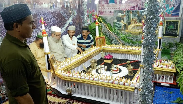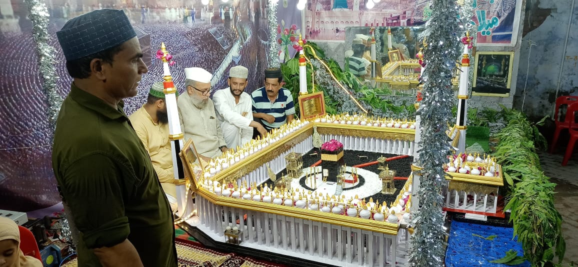 बरेली,।मोहर्रम की नौवीं तारीख की रात को मलूकपुर स्थित पूर्व पार्षद मरहूम मोहम्मद नासिर की गली में मोहम्मद शुऐब की ओर से जियारत के लिए रखे गए नक्शा-ए- हरम को देखने के लिए भारी भीड़ उमड़ी।दू
