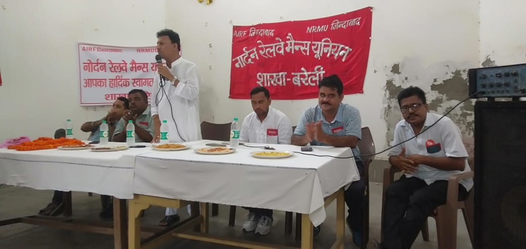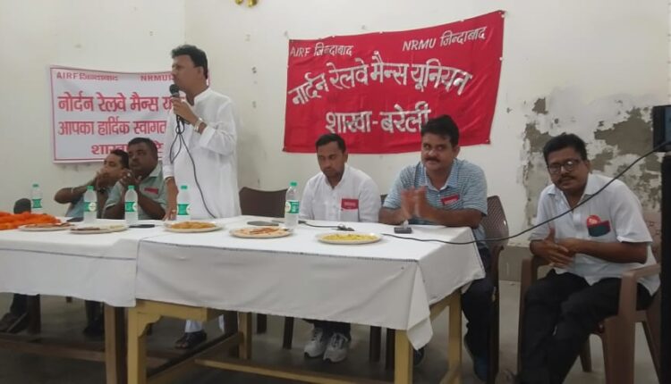 बरेली। नॉर्दर्न रेलवे मेंस यूनियन बरेली शाखा द्वारा उत्तर रेलवे मनोरंजन सदन बरेली में नॉर्दर्न रेलवे मेंस यूनियन का युवा सम्मेलन हुआ तथा 1974 के हड़ताली वरिष्ठ कॉमरेड बहादुर खान की याद में श्रद्धांजली सभा भी की गई मंडल मंत्री राजेश चौबे द्वारा बहादुर खान के फोटो पर फूल चढ़कर अपनी और से श्रद्धांजलि दी गई