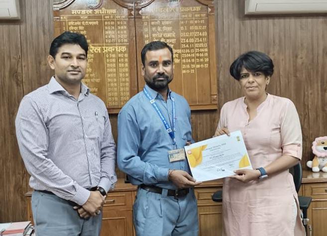 डीआरएम इज्जत नगर मंडल ने सराहनीय कार्य के लिए रेल कर्मी को किया सम्मानित