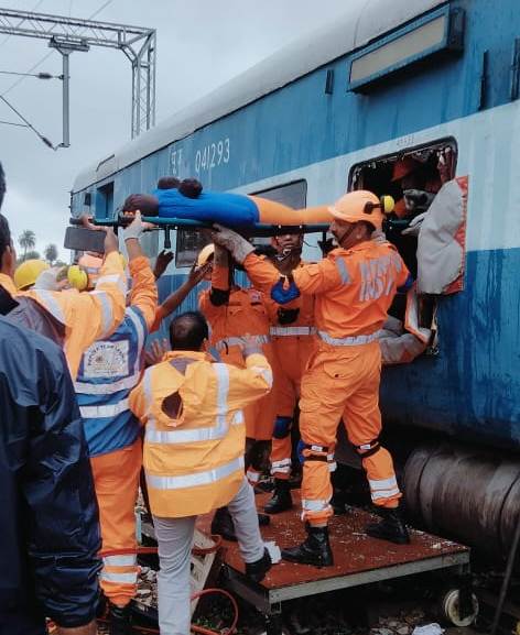 एनडीआरफ एवं रेलवे की रेस्क्यू टीम द्वारा साझा तरीके से उपकरणों का प्रयोग करते हुए डिरेल कोच को काटकर फंसे घायल यात्रियों का रेस्क्यू किया गया अभियान के दौरान रेलवे की राहत टीम एवं एनडीआरएफ की टीम के मध्य रेस्क्यू के दौरान नवीनतम तकनीकी एवं अनुभव साझा किए गए मंडल रेल प्रबंधक सुश्री रेखा यादव ने मॉक ड्रिल की प्रशंसा की