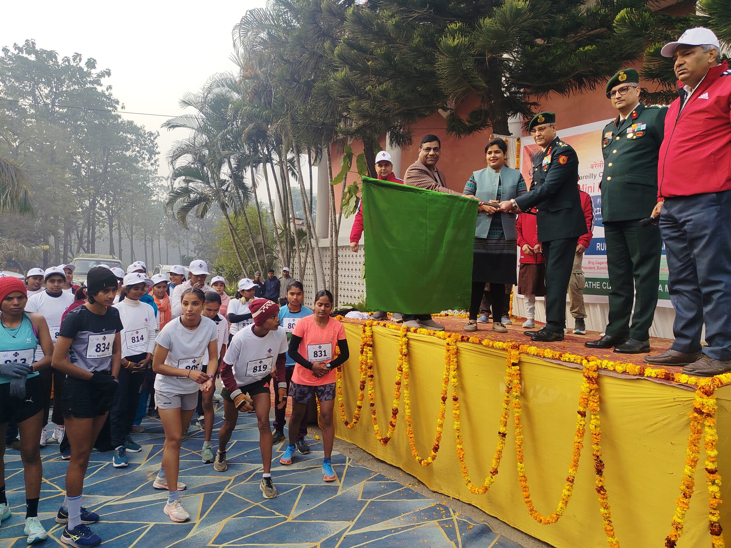 मिनी मैराथन को कैंट विधायक संजीव अग्रवाल, लेफ्टिनेंट जनरल एवं जीओसी डीजी मिश्रा तथा कैंटोनमेंट बोर्ड की मुख्य कार्यपालक अधिकारी डॉ. तनु जैन ने संयुक्त रूप से हरी झंडी दिखाकर रवाना किया।