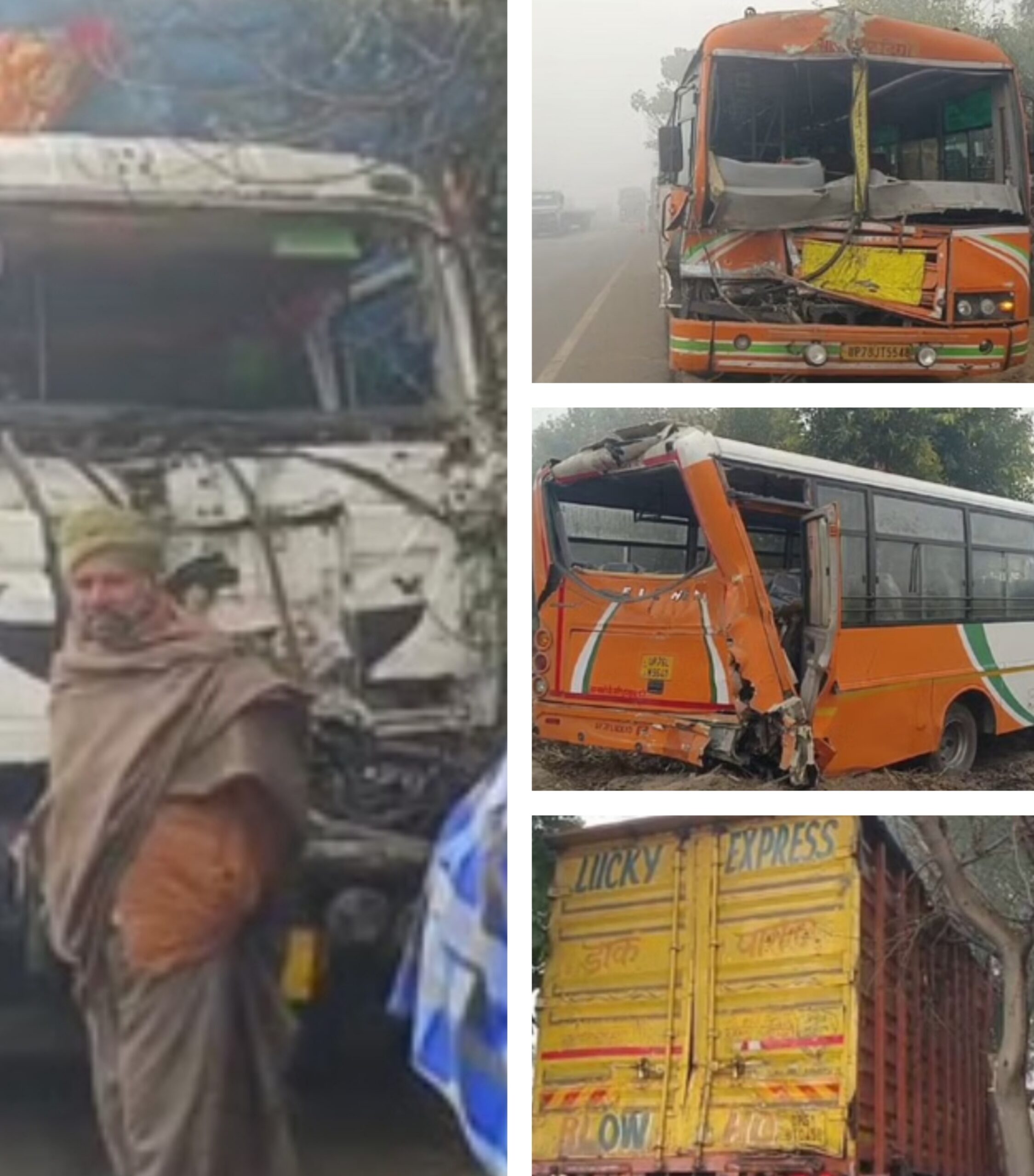 दिल्ली–लखनऊ नेशनल हाईवे पर दृश्यता शून्य होने के कारण रोडवेज बसों, ट्रक और कारों समेत करीब 20 वाहन आपस में टकरा गए।