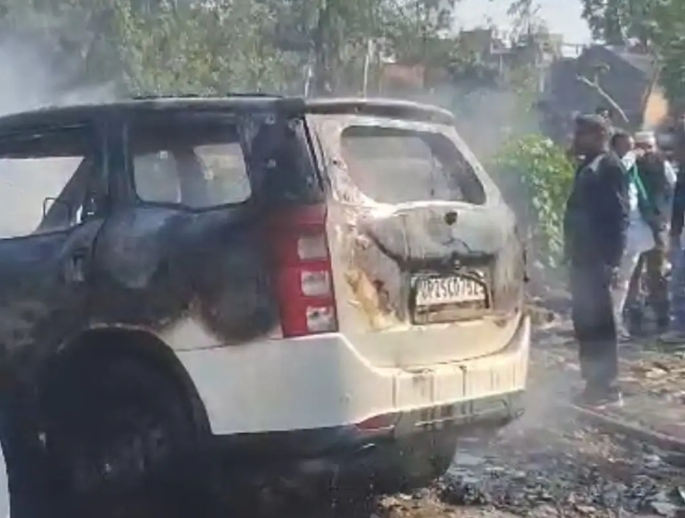 घटना दोपहर करीब 3 बजे की बताई जा रही है, जब एक एक्सयूवी कार में अचानक धुआं उठने लगा और देखते ही देखते आग की लपटें तेज हो गईं।