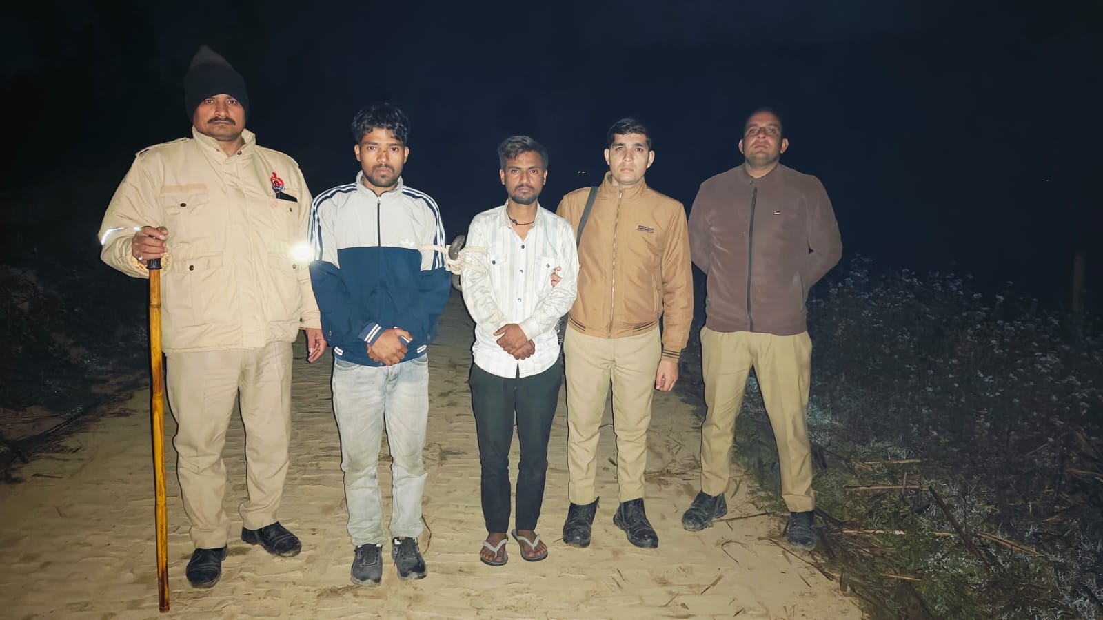 रोकने पर वाहन तेज गति से भागा और नहर किनारे पेड़ से टकरा गया। इसके बाद आरोपियों ने पुलिस टीम पर फायरिंग कर दी।