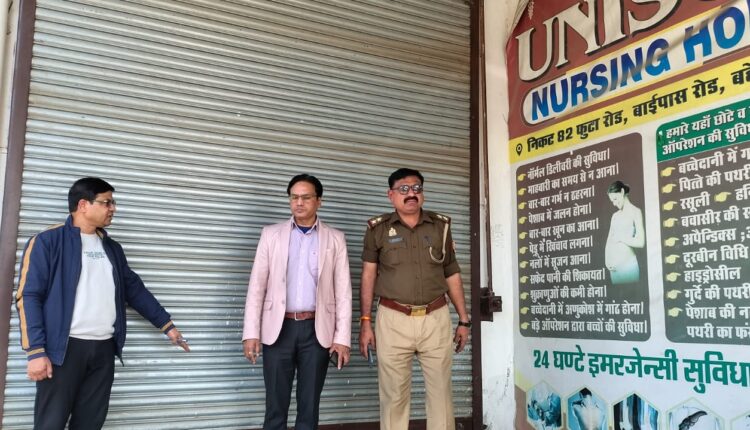 बरेली /बहेड़ी नगर के बाईपास स्थित यूनिसन हॉस्पिटल में ऑपरेशन के दौरान महिला की मौत के मामले में स्वास्थ्य विभाग ने बड़ी कार्रवाई करते हुए अस्पताल को सीज कर दिया है। मुख्य चिकित्सा अधिकारी के निर्देश पर गठित टीम ने जांच के दौरान कई मानकों की अनदेखी और गंभीर अनियमितताएं पाईं। इसके बाद डिप्टी सीएमओ ने पुलिस की मौजूदगी में अस्पताल को सील कर दिया।