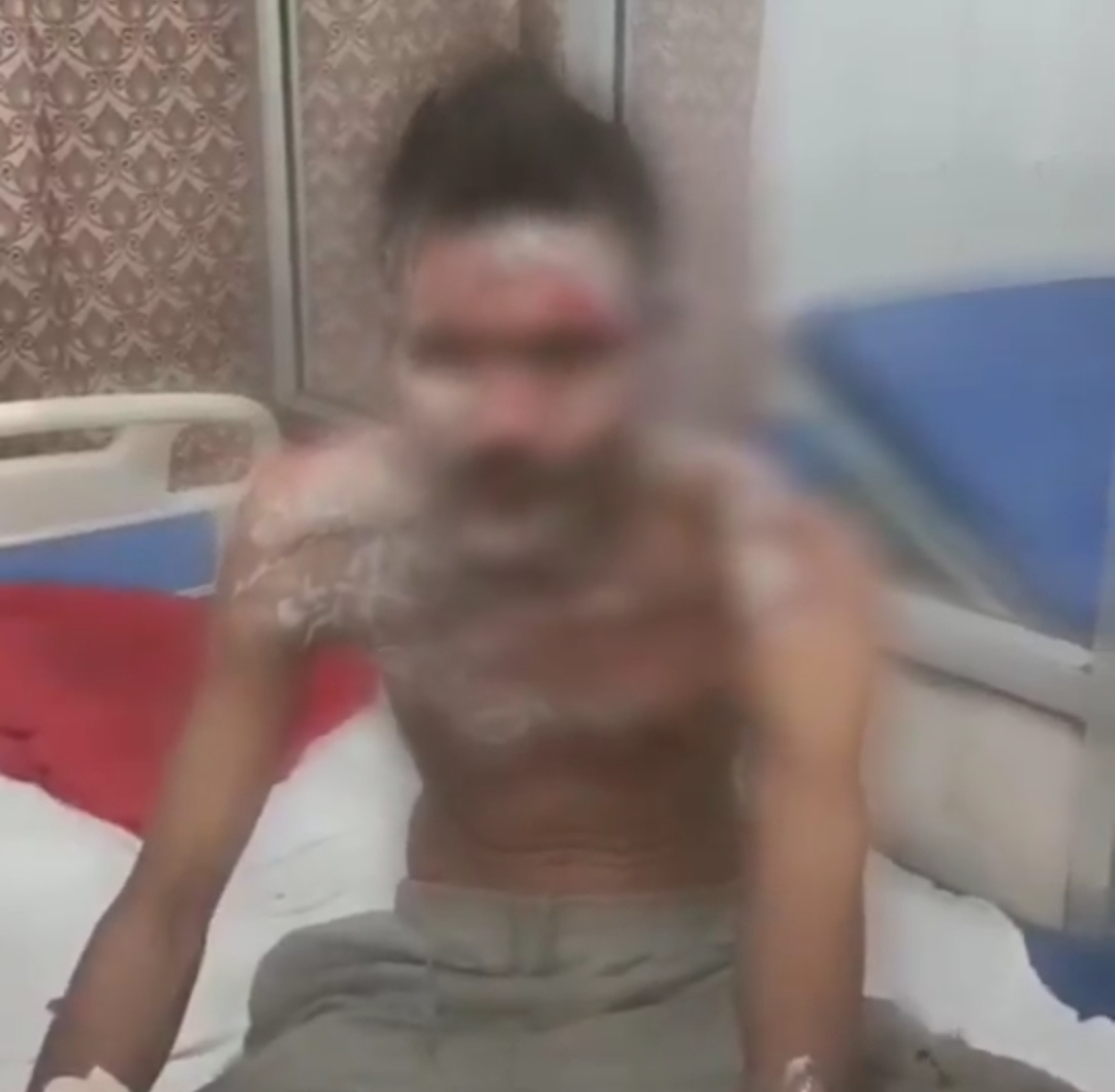 मौके पर मौजूद पुलिसकर्मियों ने किसी तरह आग बुझाई और गंभीर रूप से झुलसे युवक को तत्काल जिला अस्पताल पहुंचाया, जहां उसकी हालत नाजुक बताई जा रही है।