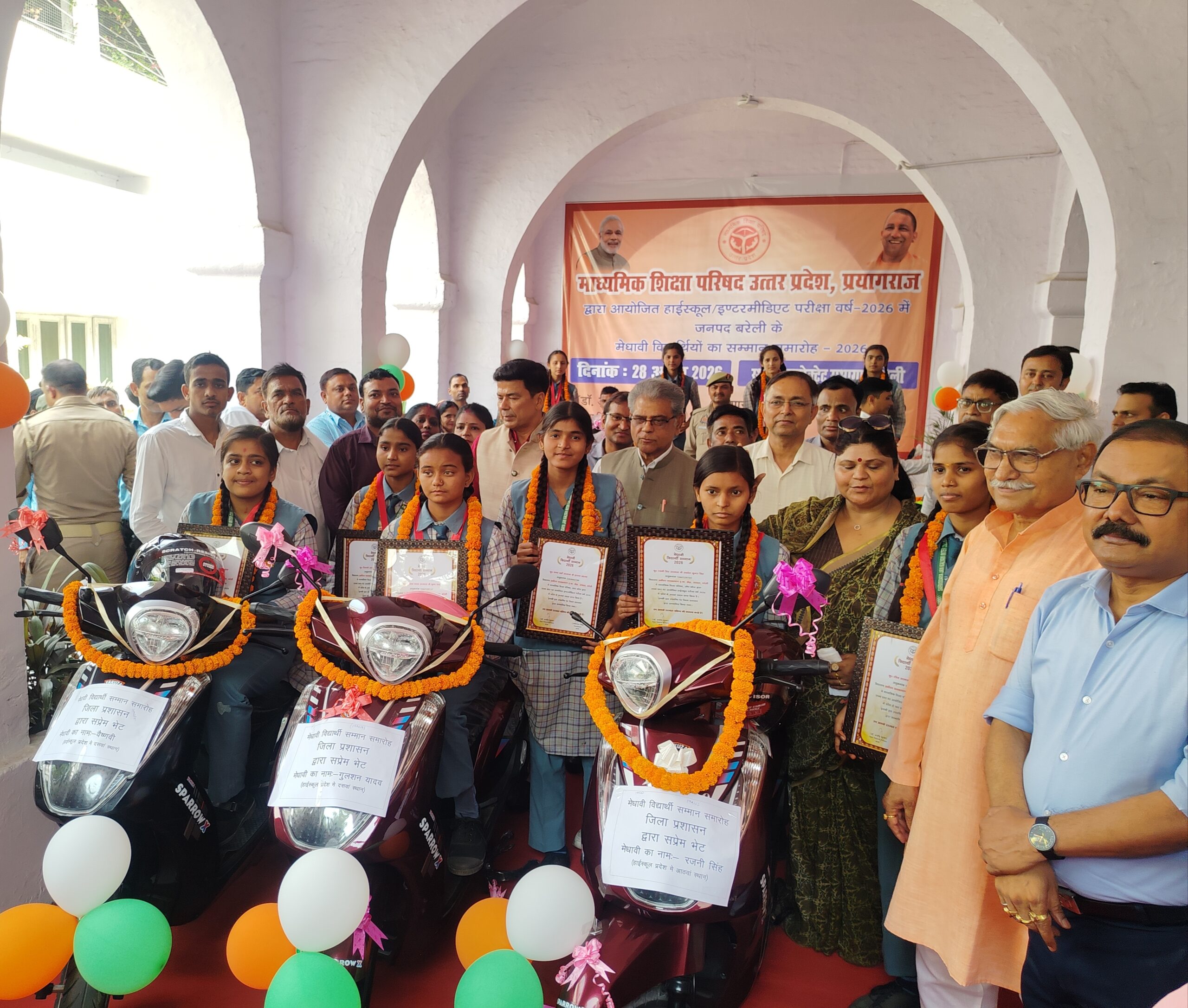 *बरेली, मंगलवार:* माध्यमिक शिक्षा परिषद उत्तर प्रदेश प्रयागराज द्वारा आयोजित हाईस्कूल और इंटरमीडिएट परीक्षा 2026 में बरेली का परचम लहराने वाले मेधावी विद्यार्थियों का सम्मान समारोह कलेक्ट्रेट सभागार में धूमधाम से संपन्न हुआ। इस बार जिला प्रशासन ने टॉपर्स को याकूज़ा स्पेरो इलेक्ट्रिक स्कूटी सप्रेम भेंट कर सबको चौंका दिया।